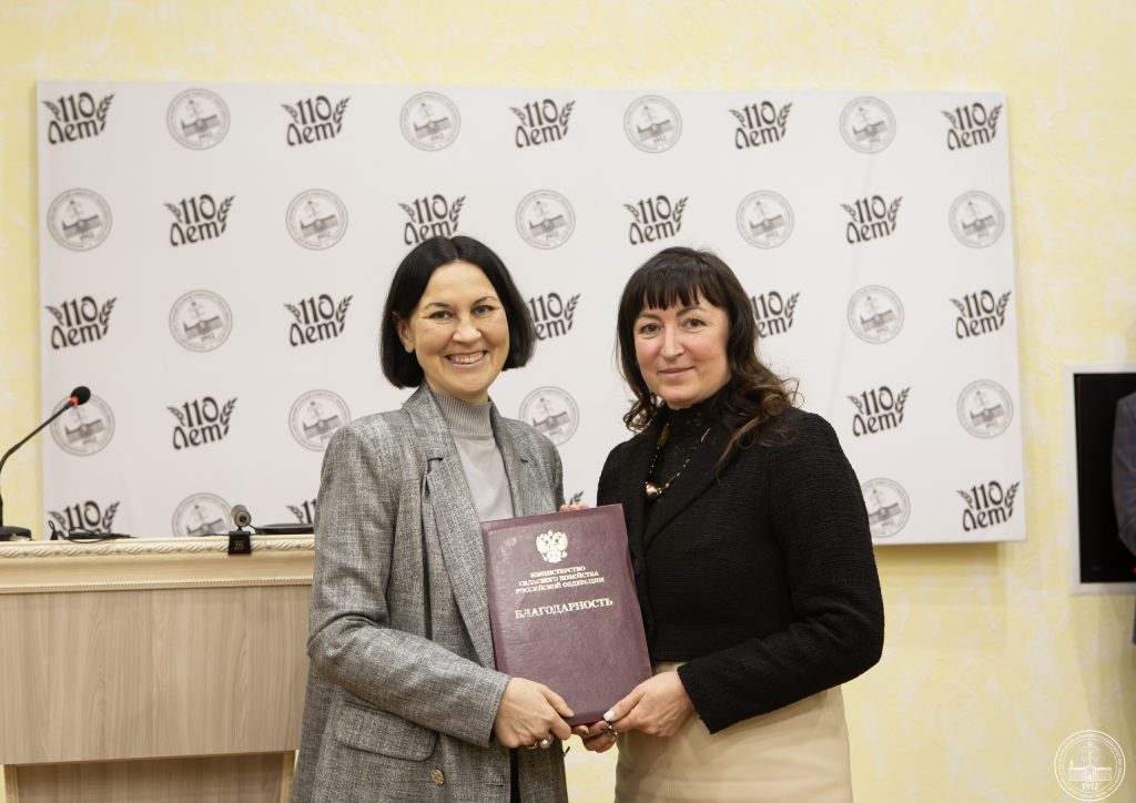 Благодарность Министерства сельского хозяйства за многолетний и добросовестный труд в системе АПК вручена: доценту кафедры электротехники и автоматики Дмитрию Геннадьевичу Козлову; доценту кафедры частной зоотехнии Светлане Валерьевне Польских; доценту кафедры информационного обеспечения и моделирования агроэкономических систем Елене Дмитриевне Кузнецовой; заведующему кафедрой механизации животноводства и безопасности жизнедеятельности Андрею Сергеевичу Корневу; доценту кафедры терапии и фармакологии Наталье Викторовне Мельниковой; доценту кафедры частной зоотехнии Инне Юрьевне Венцовой.