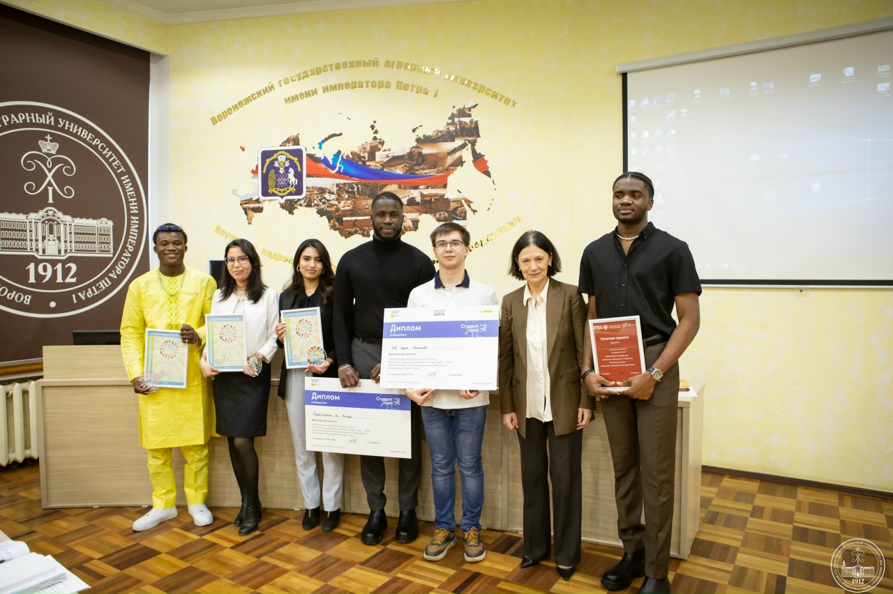 Диплом победителя заочного регионального этапа Российской национальной премии «Студент года – 2025» образовательных организаций высшего образования вручен: Андрею Дмитриевичу Голову, номинация «Патриот года»; Ндейкассокланим Ка Этиандру, номинация «Иностранный студент года».